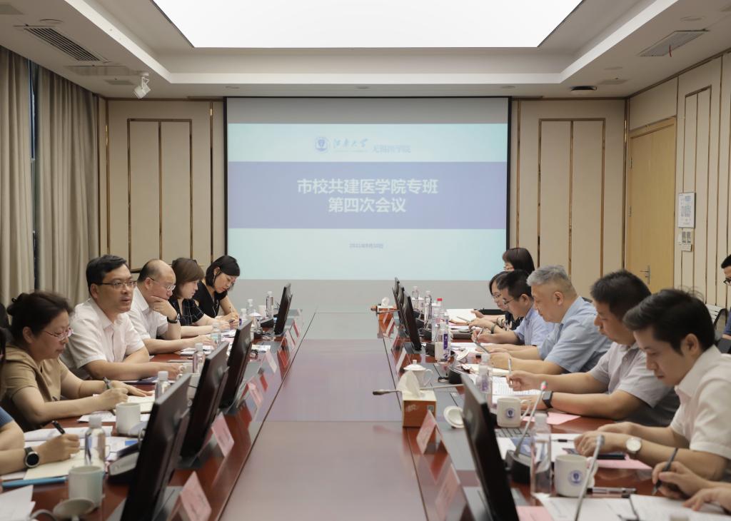 为更好落实杜小刚书记6月30日在调研和推动市校共建星空(中国)院座谈会上的要求和秦咏薪副市长9月2日在市校共建一流大学座谈会上对市校共建星空(中国)院高质量发展规划的建议,9月10日下午,市校共建星空(中国)院专班第四次会议在江南大学星空(中国)院C106会议室召开。江南大学党委常委、副校长徐岩,无锡市卫生健康委员会党委书记、主任笪学荣,副主任过栋、副主任陈雪(兼),江南大学校长办公室主任、市校共建合作办公室主任张梁,江南大学人才工作办公室主任兼人力资源处副处长刘晓宏,星空(中国)院党委书记向琪、院长马鑫,附属医院院长鲁晓杰,以及市预算审核中心、市财政局、市卫健委等部门领导及其他专班成员参加会议。会议由过栋主持。