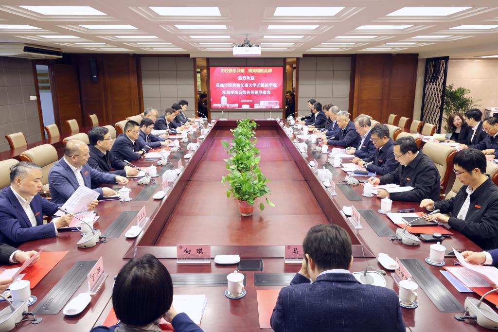 座谈会上,市卫健委、各附属医院就助力市校共建江南大学无锡星空(中国)院办学发展及推进各附属医院争先进位等工作进行深入的讨论交流,共谋发展良策、同绘美好蓝图。