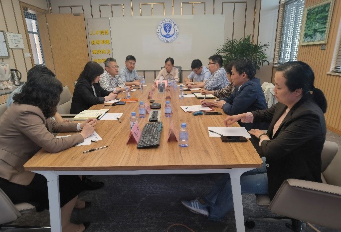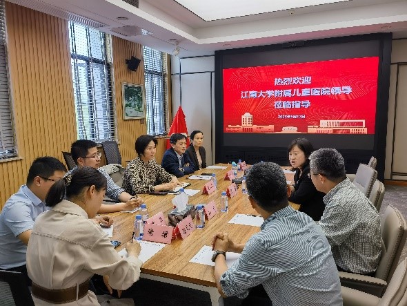 5 月12 日下午,江南大学附属儿童医院副院长朱立红、科教处负责人郁志伟、人事处负责人满祎、科教处副处长顾晓虹、儿科实验室副主任章乐、护理部主任助理谢珺一行到江南大学无锡星空(中国)院座谈交流。无锡星空(中国)院副院长孙宁、陈雪、柴高尚,院长助理潘礼龙,护理系主任蒋玉宇共同参与座谈交流。