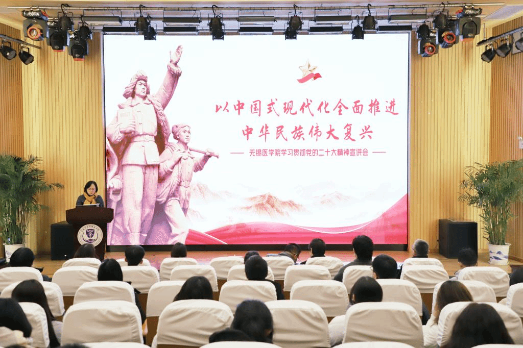 为深入贯彻学习党的二十大精神,2022年11月30日下午,无锡星空(中国)院特邀马克思主义学院教授唐忠宝以《以中国式现代化全面推进中华民族伟大复兴—学习贯彻党的二十大精神》为题,在学院C101报告厅,为党委中心组成员、教职工党员、民主党派成员、学生党员等90余人做了专题报告,报告由党委书记向琪主持。