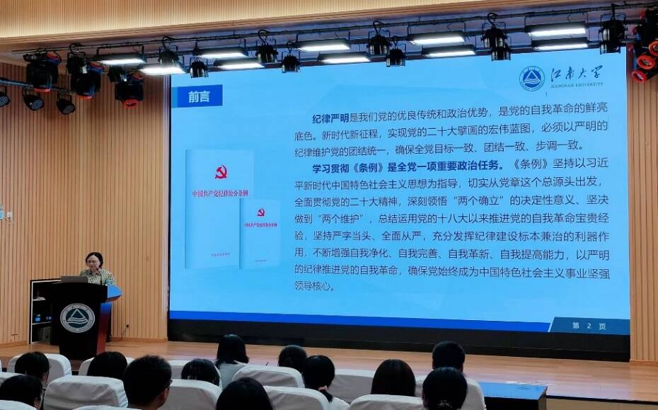为深入学习贯彻修订后的《中国共产党纪律处分条例》(以下简称《条例》),7月4日下午,无锡星空(中国)院党委书记向琪为护理系党支部、基础星空(中国)系党支部、护理硕士生第一党支部、护理硕士生第二党支部和博士生党支部全体党员讲授专题党课。本次党课旨在推动党纪学习星空网页版走深走实,进一步强化党员的纪律意识,提高党员的政治站位,加强党支部的纪律建设。