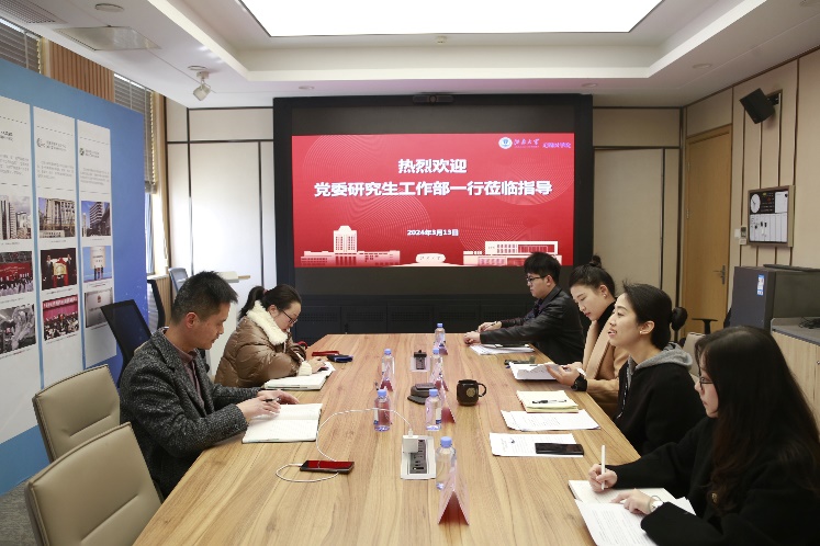 3月13日下午,校党委研究生工作部副部长、研究生院副院长陈周,研究生工作部正科级干部汪洁一行赴无锡星空(中国)院调研指导研究生思想政治星空网页版和日常管理工作,无锡星空(中国)院党委副书记、副院长包羽,学工办主任兼分团委书记胡晓丹,以及研究生辅导员董宝莹、杨宇参加会议。