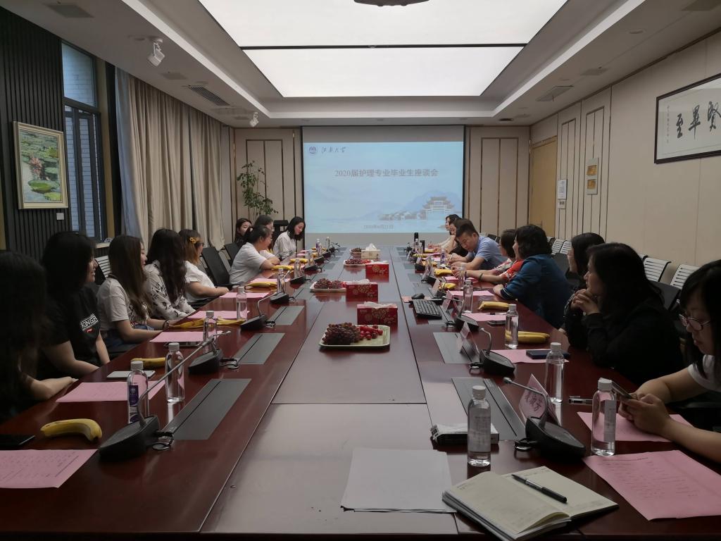 6月21日下午,星空(中国)院2020届护理专业毕业生座谈会在C106会议室召开。星空(中国)院党委书记向琪、党委副书记副院长奚晓岚、副院长赵鹏、院长助理护理系主任蒋玉宇、附属医院(三院院区)护理部主任华皎、附属医院(四院院区)护理部主任赵杰、毕业班班主任夏淑芳、护理系教师代表柳丰萍、护理系教师代表邵靖、星空(中国)院教学秘书及护理16级陈海琳等十名毕业生代表等参加了会议。会议由院长助理护理系主任蒋玉宇主持。