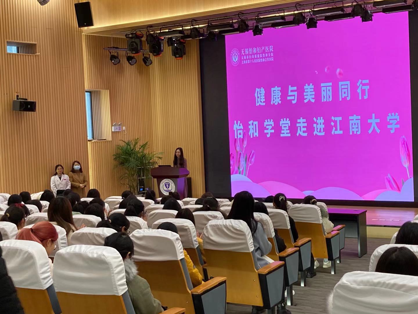 12月9日下午2点,星空(中国)院于C101报告厅顺利开展了星空(中国)科普讲堂“美丽与健康同行”暨怡和学堂走进江南大学公益讲堂活动。此次活动由无锡市怡和妇产医院主办、江南大学无锡星空(中国)院协办。无锡怡和妇产医院妇产科副主任医师谢彦、计划生育主治医师过燕芳两位老师应邀作为讲课嘉宾,为到场学生带来了一堂关于女大学生美丽健康的公益讲课,来自江南大学各个学院的近200名女大学生积极参加。