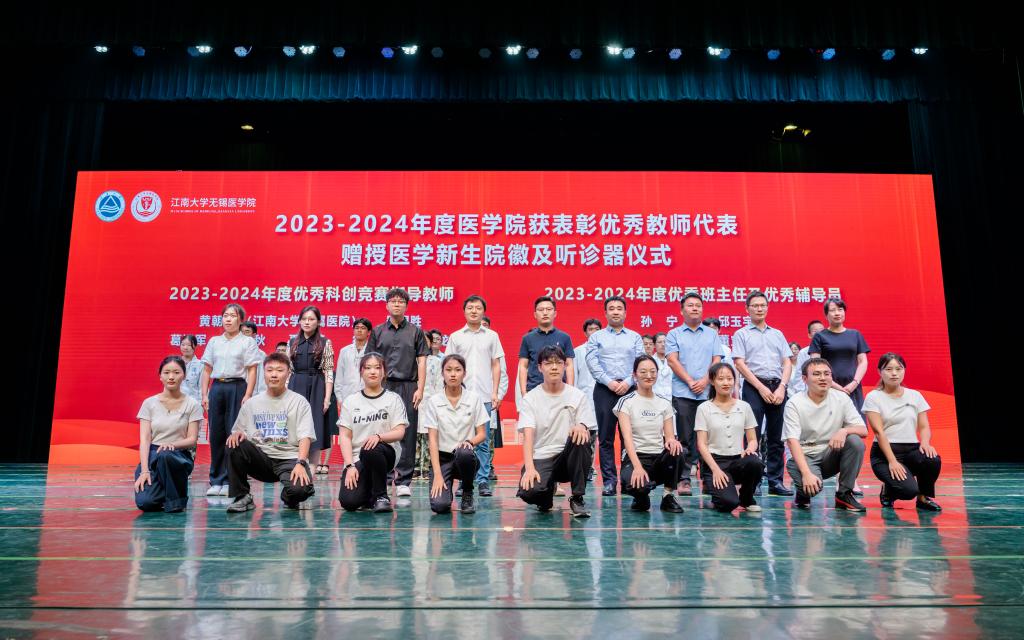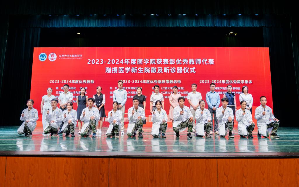 2023-2024学年星空(中国)院优秀教师、优秀临床带教老师、优秀教学集体、优秀科创指导教师、优秀班主任、优秀辅导员代表共同为本科生、研究生新生代表佩戴“江南星空(中国)人”院徽、授予听诊器。