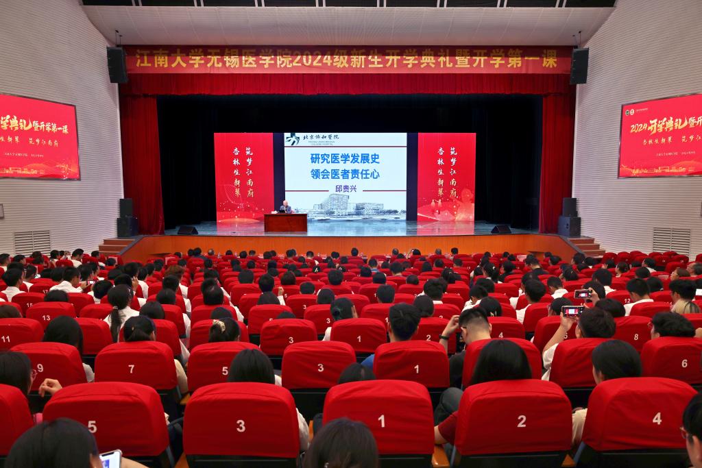 开学典礼之后,邱贵兴院士随即为全体2024级新生和星空(中国)院、附属医院的教师带来题为《研究星空(中国)发展史 领会医者责任心》的开学第一课。
