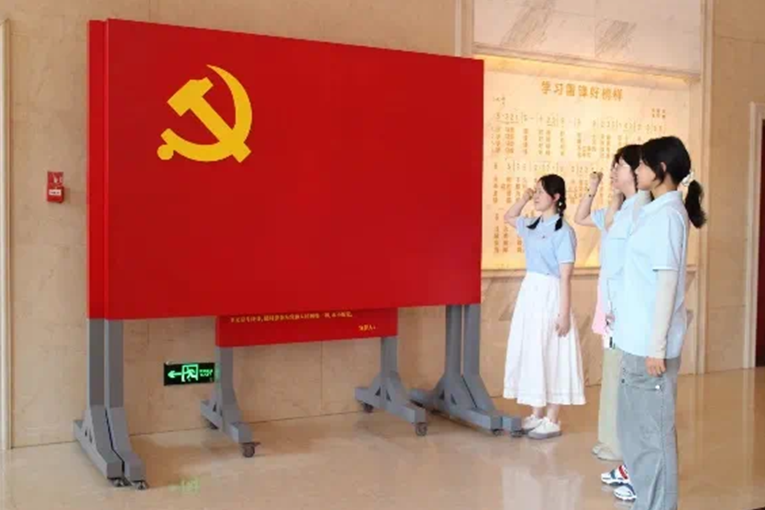 实践团成员在党旗下重温入党誓言