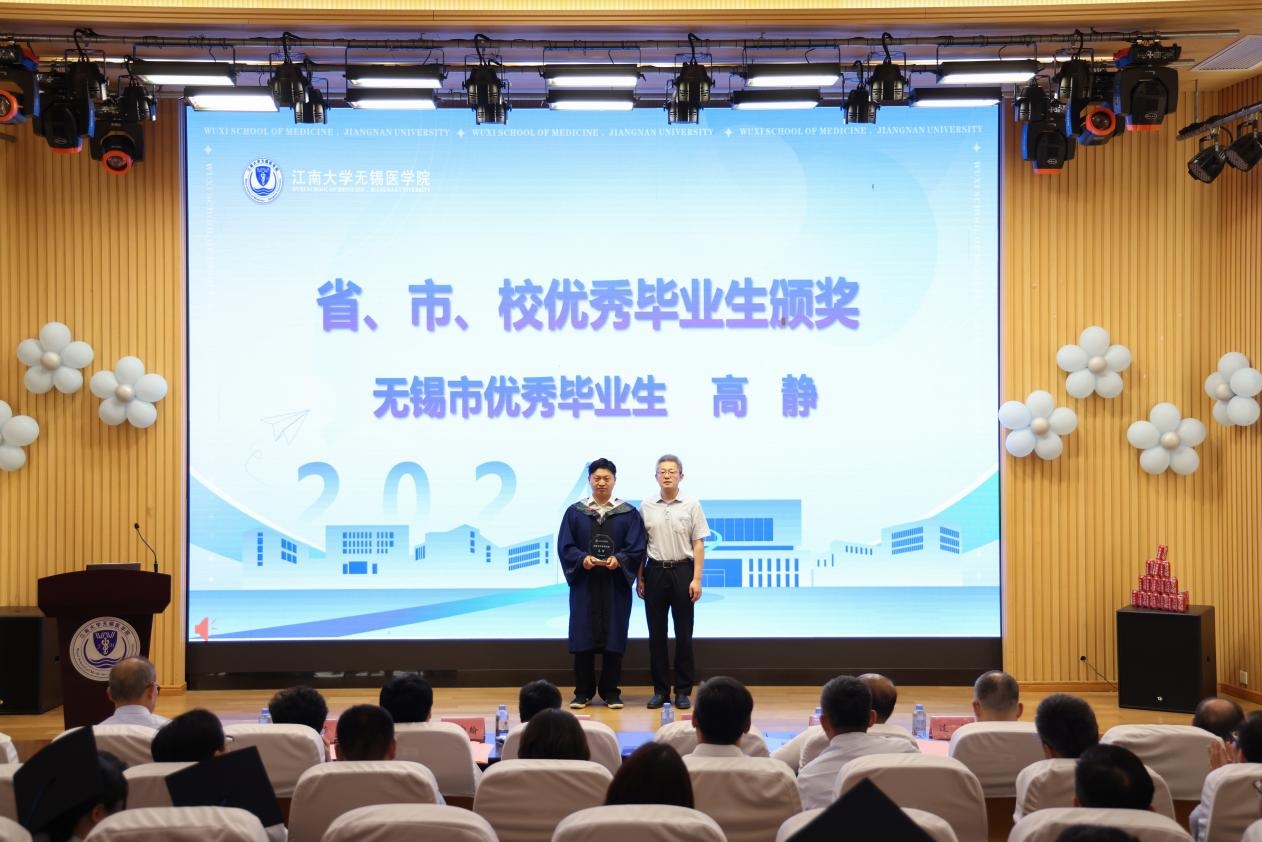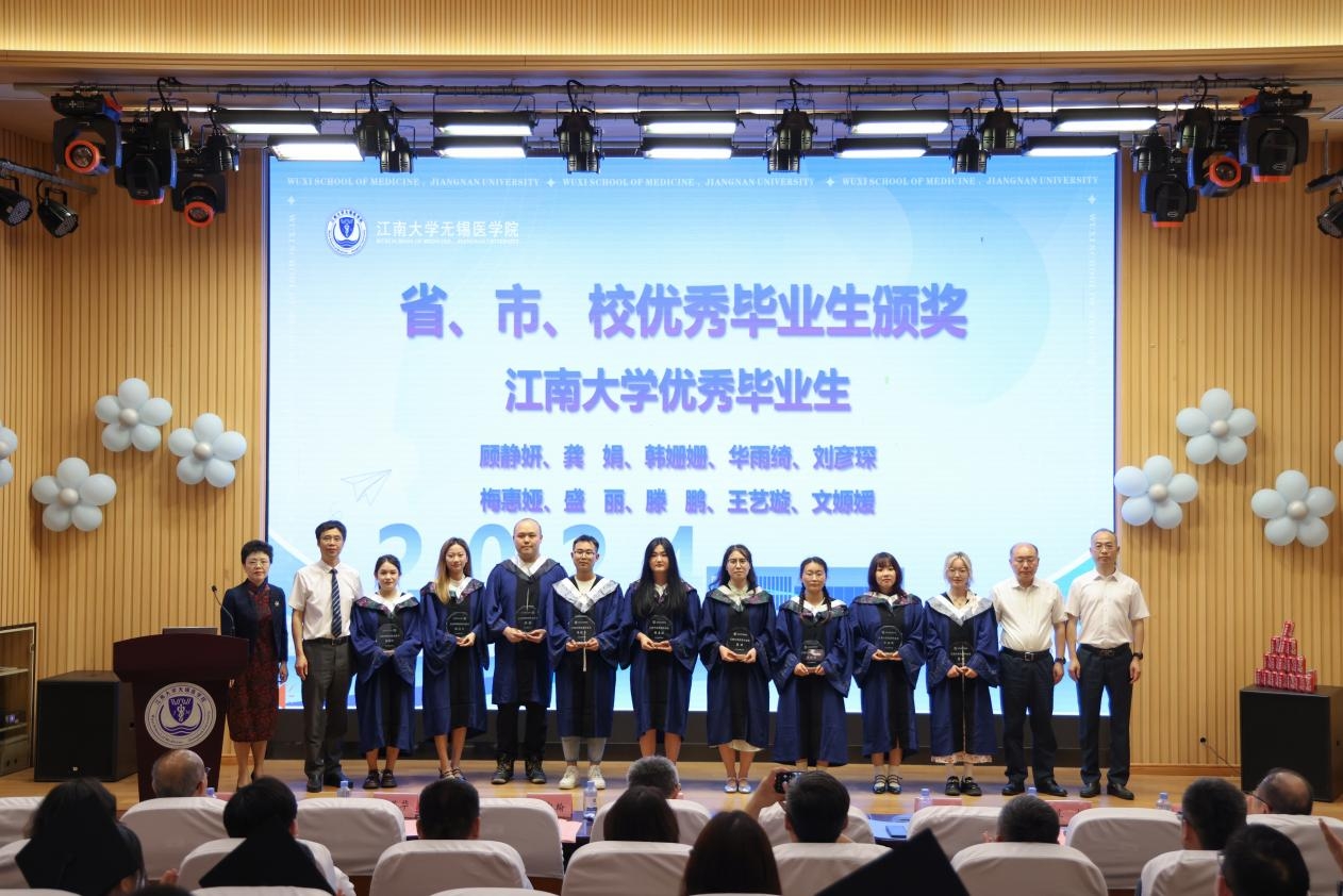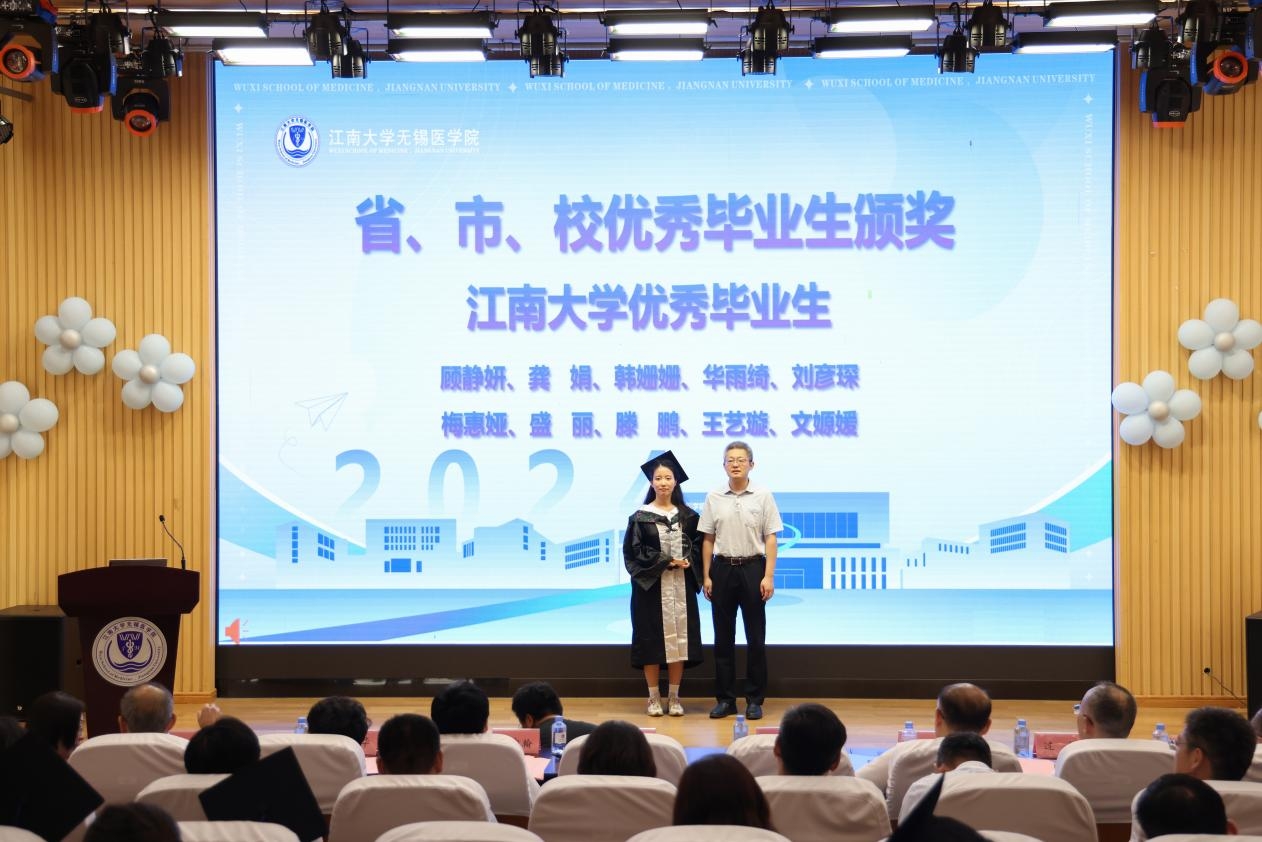 仪式环节,向琪为江苏省优秀毕业生颁奖,孙宁为无锡市优秀毕业生、江南大学优秀本科毕业生颁奖,过栋、过忆、冯宁翰、钱燕华为江南大学优秀研究生毕业生颁奖,奚晓岚、柴高尚、赵鹏分别为本科升学代表、硕士升学代表和留锡就业代表颁发升学就业奖励补助。程洋、徐德武、姜宇、潘礼龙、蒋玉宇、吴郁为毕业生代表发放毕业纪念品并送上祝福。