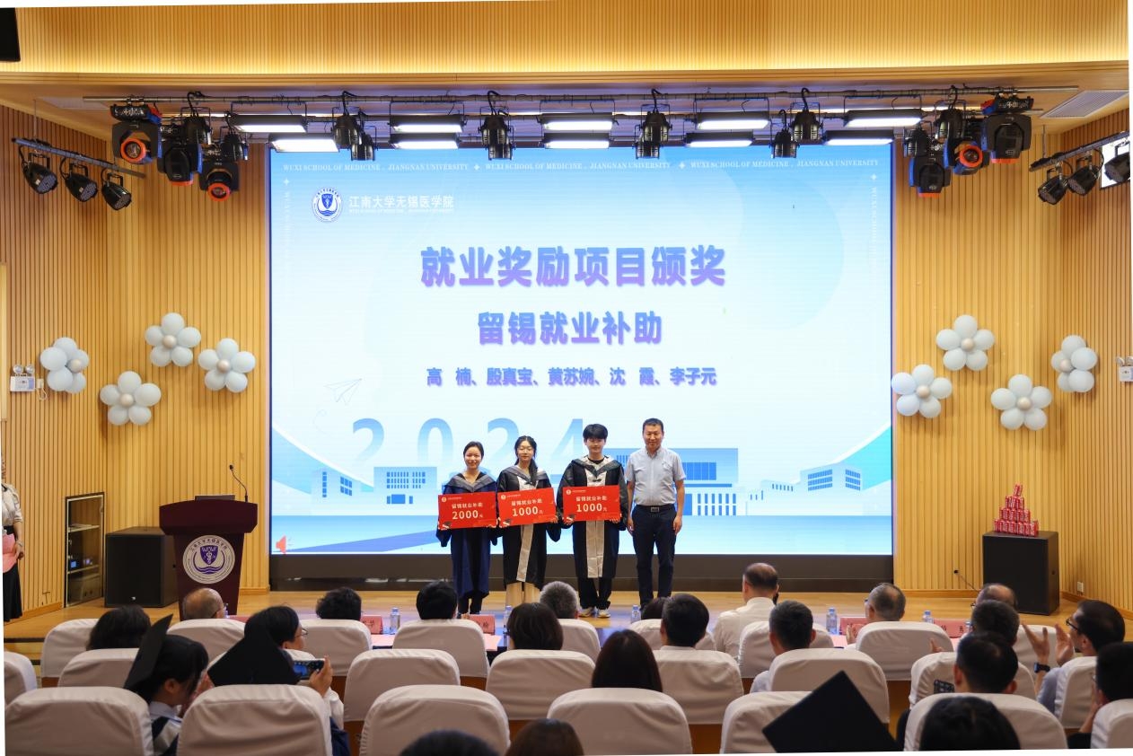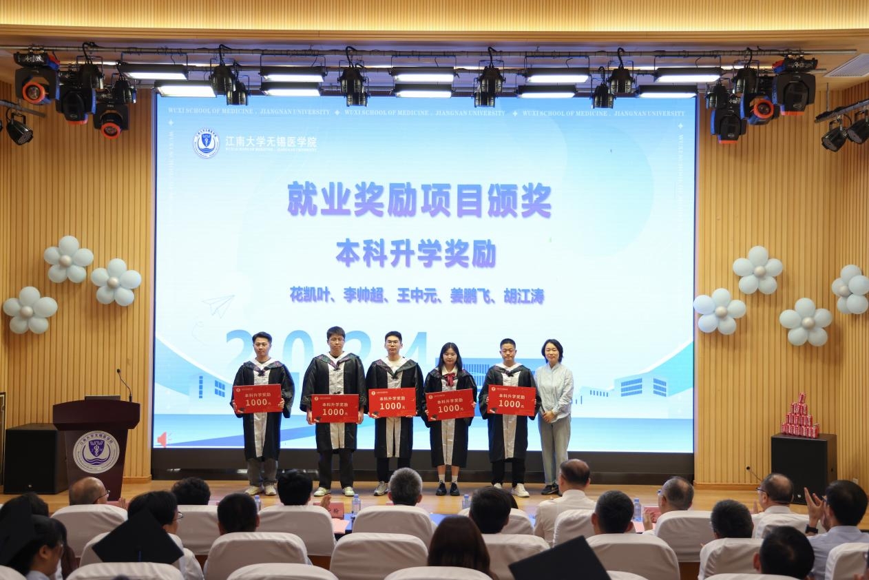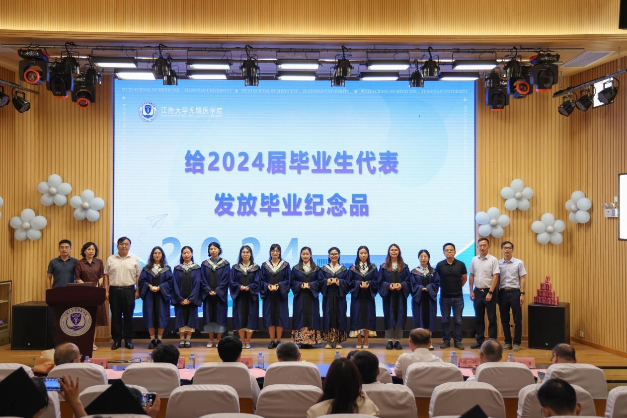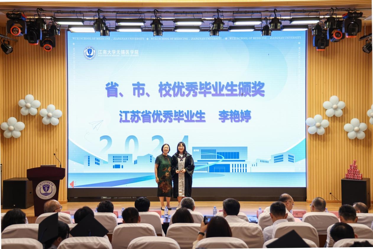 仪式环节,向琪为江苏省优秀毕业生颁奖,孙宁为无锡市优秀毕业生、江南大学优秀本科毕业生颁奖,过栋、过忆、冯宁翰、钱燕华为江南大学优秀研究生毕业生颁奖,奚晓岚、柴高尚、赵鹏分别为本科升学代表、硕士升学代表和留锡就业代表颁发升学就业奖励补助。程洋、徐德武、姜宇、潘礼龙、蒋玉宇、吴郁为毕业生代表发放毕业纪念品并送上祝福。