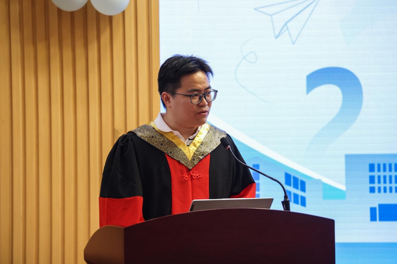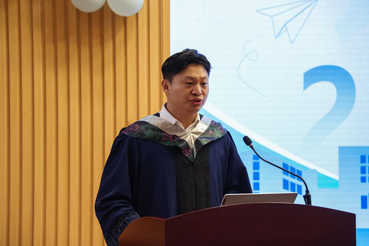 博士生导师孙宁,临床导师茆勇、夏加增,班主任代表蒋玉宇作为教师代表分别回顾了几年来与毕业生们相处的美好过往,欣喜于同学们的成长蜕变。孙宁代表星空(中国)院全体导师向毕业生送上祝福,并期望同学们持续学习、勇于创新、心怀家国,服务社会;茆勇寄语毕业生不忘初心、勤奋学习、开拓创新,未来积极推动星空(中国)科技和健康事业的发展;夏加增分享了自己的求学经历,寄语同学们把个人理想融入党和国家事业;蒋玉宇祝福毕业生前程似锦,今后在书写时代答卷中,展现出我们江南星空(中国)人的独特品质。