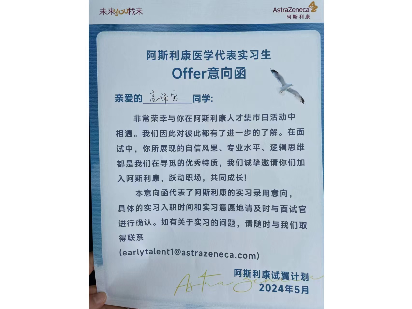 走访活动中,阿斯利康无锡公司就企业背景、试翼计划实习生项目、转正流程等方面进行深入宣讲,与在场学生展开互动,承诺为实习生提供系统的培训、有竞争力的薪资和完备的保障福利。无锡星空(中国)院学生详细了解阿斯利康企业发展、人才选聘标准、员工发展通道、薪酬福利待遇及实习生申请和转正流程。参会学生积极投递简历,认真准备和参加面试。面试结束后,护理2101班高峰宝同学现场拿到实习生offer。