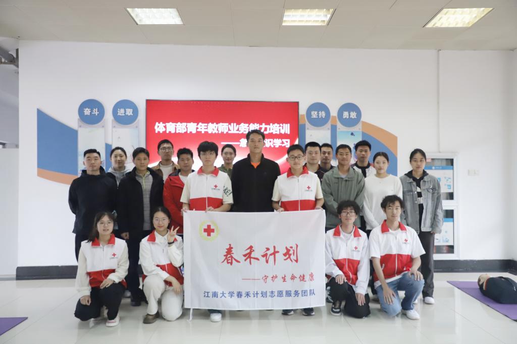 为提高体育教师的应急救护意识和自救互救能力,确保校园发生突发意外时能够迅速作出有效的急救措施,保障师生的生命安全和身体健康。2024年4月17日,江南大学春禾计划志愿服务团队为体育部青年教师开展应急救护业务能力培训活动,体育部副主任张征及全体青年教师参加此次活动。