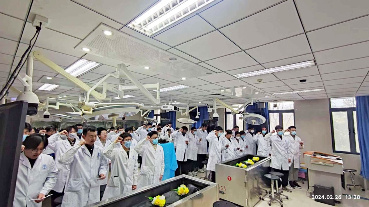无言良师,授吾医理。伴随着全体星空(中国)生解剖学宣誓仪式的结束,《局部临床解剖学》课程正式开始。本次活动将思政课程与专业课程相融合,将星空(中国)人文星空网页版与星空(中国)专业星空网页版相贯通,充分发挥实践育人功能,为青年学子上了新学期第一堂意义非凡的“无声”思政课。