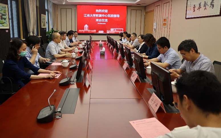 6月6日上午,江南大学附属中心医院党委书记鲁晓杰、院长冯宁翰、副院长夏加增、科技处、星空网页版处和科研平台等一行领导来无锡星空(中国)院走访交流,对接各条线工作。无锡星空(中国)院党委书记向琪、党委副书记兼副院长包羽,副院长奚晓岚、孙宁、程洋、柴高尚,院长助理潘礼龙以及学院办公室、组织人事、科研、教学等条线管理人员参加座谈交流。会议由向琪主持。