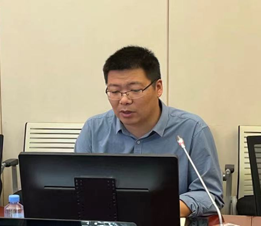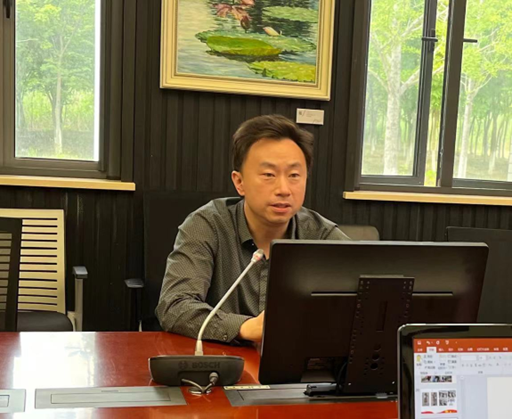 图二教学科研中心党支部书记侯豹介绍支部情况