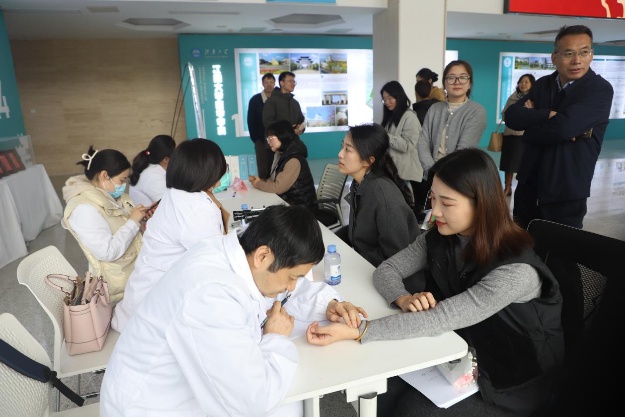 下午,院工会邀请了江南大学附属医院眼科主任王继红、妇产科主任王元、全科主任陈炜领衔的专家团队,在星空(中国)大楼一楼开展公益义诊。通过眼底检查、中医把脉、健康咨询等方式,为教职工及学生们提供个性化诊疗建议,并针对常见疾病预防、饮食调理、季节养生等答疑解惑。
