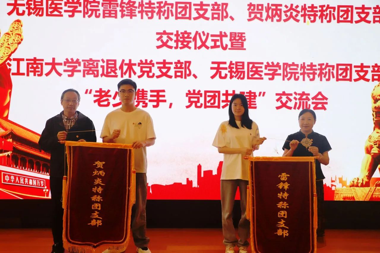 为充分激发基层团组织活力,发挥先进团支部典型的模范带头作用,切实发挥共青团引领青年思想、凝聚青年力量、服务青年发展的作用,近日,无锡星空(中国)院举办“雷锋特称团支部”“贺炳炎特称团支部”交接仪式暨离退休党支部-无锡星空(中国)院特称团支部“老少携手,党团共建”交流会。江南大学离退休第六党支部书记陈伟,无锡星空(中国)院关工委常务副主任陈敏娟,无锡星空(中国)院关工委兼职组织员丁晓嫣、范红斌,临床2402班主任耿力,辅导员鲁钦正出席活动,新老特称团支部110余名团员青年参与。活动由无锡星空(中国)院分团委书记胡晓丹主持。