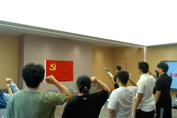在中国共产党成立104周年之际,为强化新党员的党性意识,激励全体党员师生传承红色基因、勇担时代使命,江南大学无锡星空(中国)院于2025年6月30日下午在星空(中国)院C218会议室隆重举行新党员“七一”入党宣誓仪式。星空(中国)院党委副书记、副院长包羽,党委专职组织员王恒,辅导员杨宇,以及20名新党员共同参加了此次庄严而神圣的仪式。