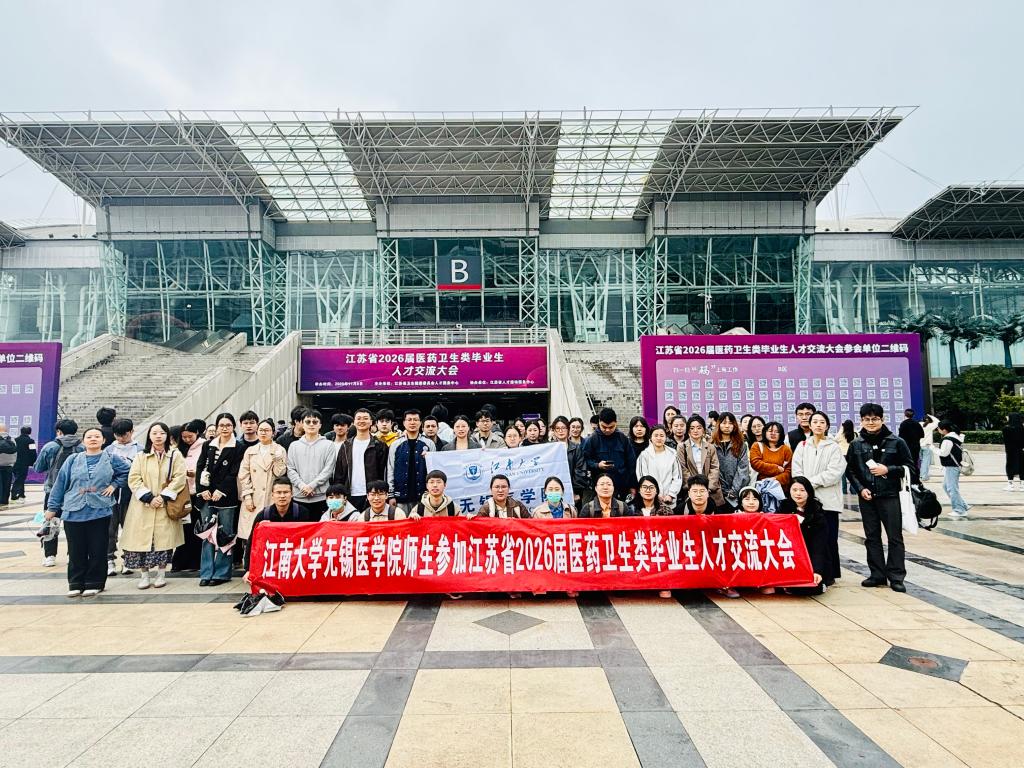 2025年11月8日,由江苏省卫生健康委员会指导、江苏省卫生健康委员会人才服务中心主办、江苏省人才流动服务中心协办的江苏省2026届医药卫生类毕业生人才交流大会,在南京国际展览中心盛大举办。江南大学无锡星空(中国)院党委副书记、副院长包羽带队,率2026届本科毕业生辅导员鲁钦正、研究生毕业生辅导员杨宇及150余名本研毕业生代表参会,精准对接优质就业资源,助力星空(中国)生在专业赛道上找到理想岗位,实现高质量就业。