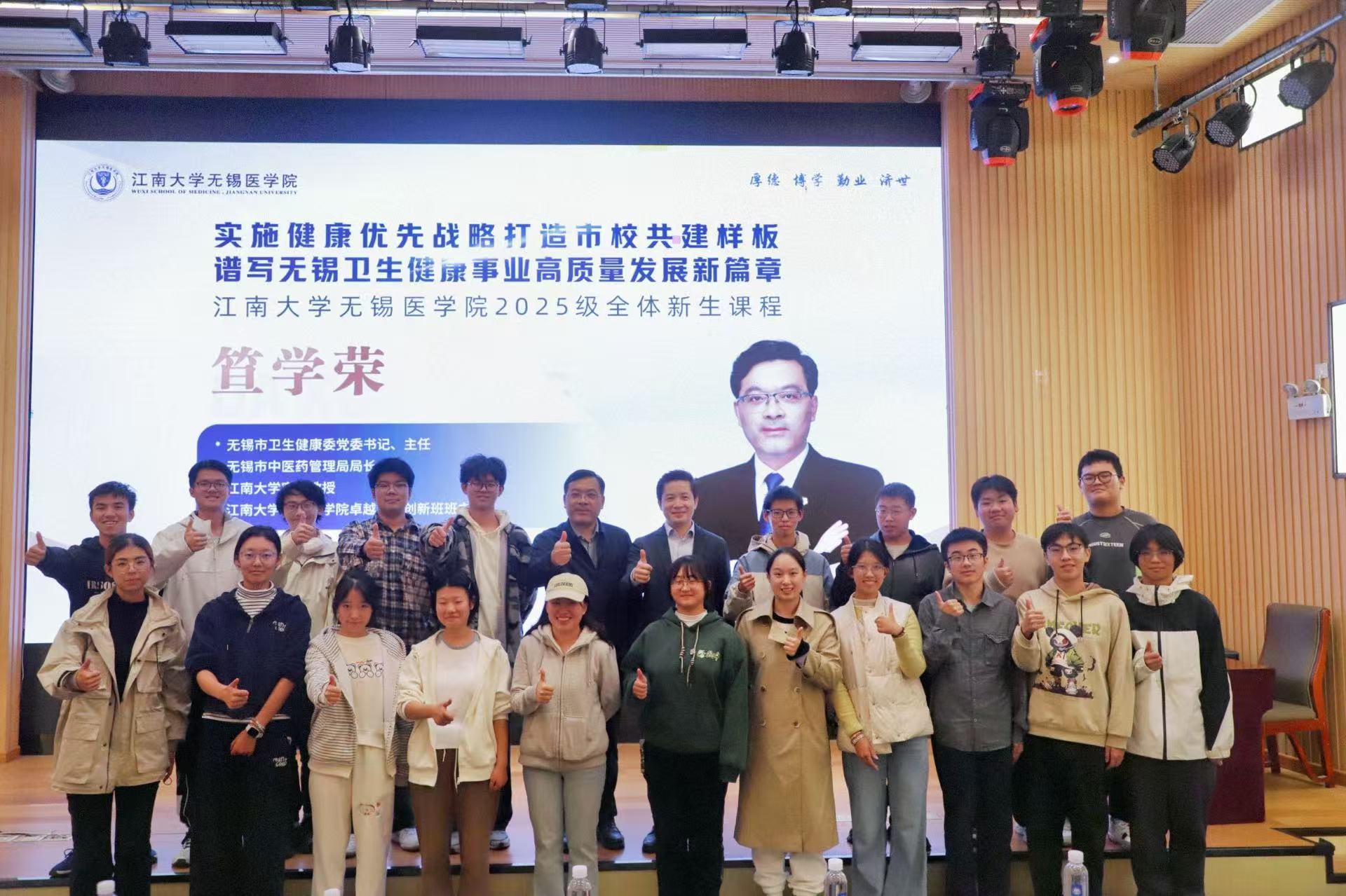 深耕市校共建沃土,共育卓越星空(中国)良才。2025年11月11日下午,无锡市卫生健康委员会党委书记、主任笪学荣应邀做客星空(中国)院“杏林春暖”大讲堂,为2025级全体本科新生作题为“实施健康优先战略 打造市校共建样板 谱写无锡卫生健康事业高质量发展新篇章”的专题报告。江南大学党委常委、副校长、无锡星空(中国)院院长马鑫,无锡星空(中国)院党委书记向琪,无锡星空(中国)院执行院长孙宁,副院长代卉,2025级全体本科生参加专题报告会,报告会由无锡星空(中国)院党委副书记、副院长包羽主持。