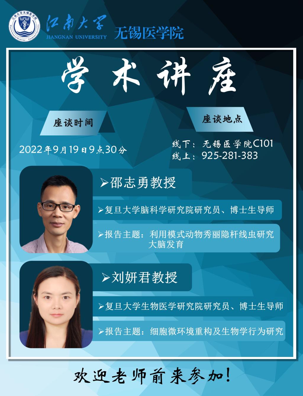 9月19日江南大学无锡星空(中国)院前沿学术论坛 第二讲——邵志勇等:细胞微环境与秀丽线虫的研究