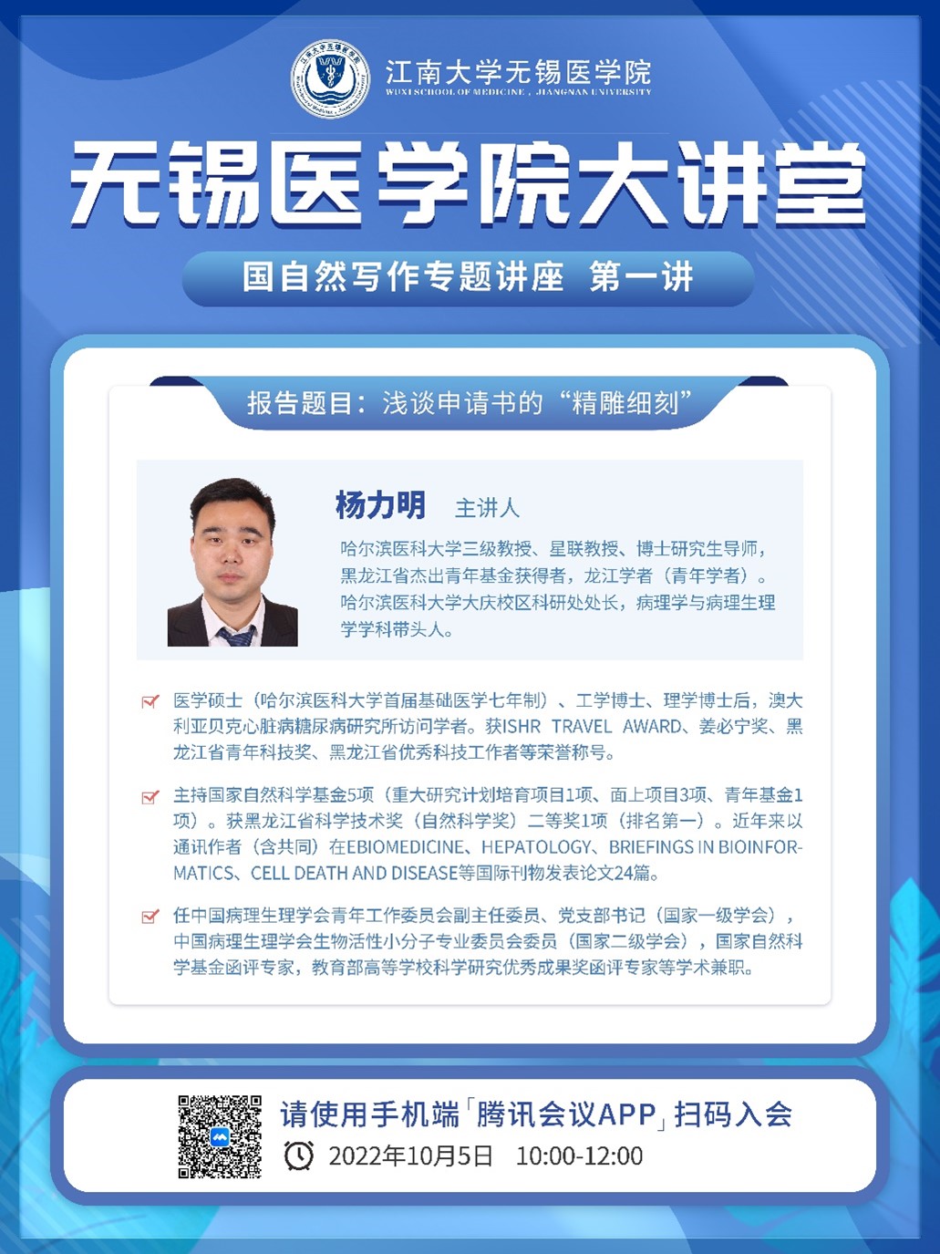 10月5日江南大学无锡星空(中国)院前沿学术论坛 第四讲——杨力明:浅谈申请书的“精雕细刻”