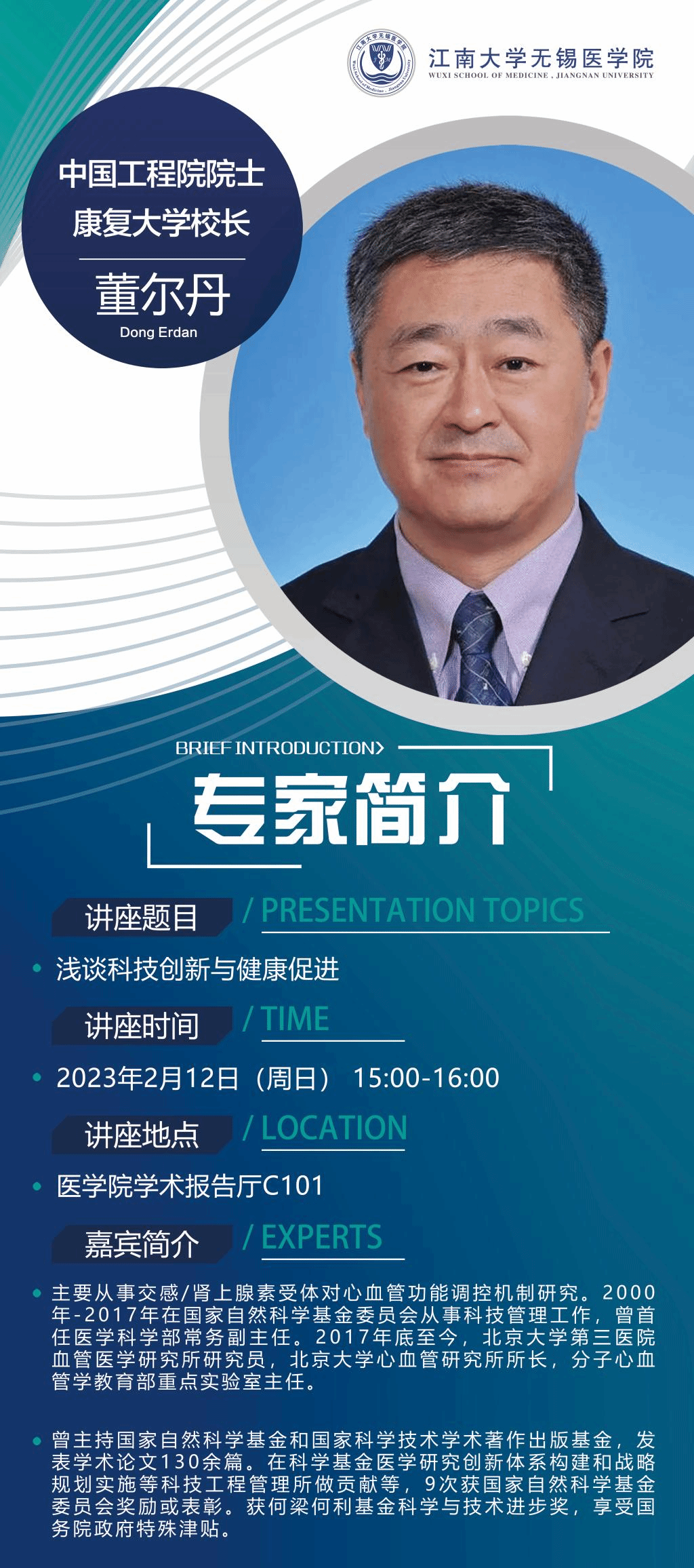 2月12日江南大学无锡星空(中国)院前沿学术论坛第十二讲 董尔丹院士——浅谈科技创新与健康促进
