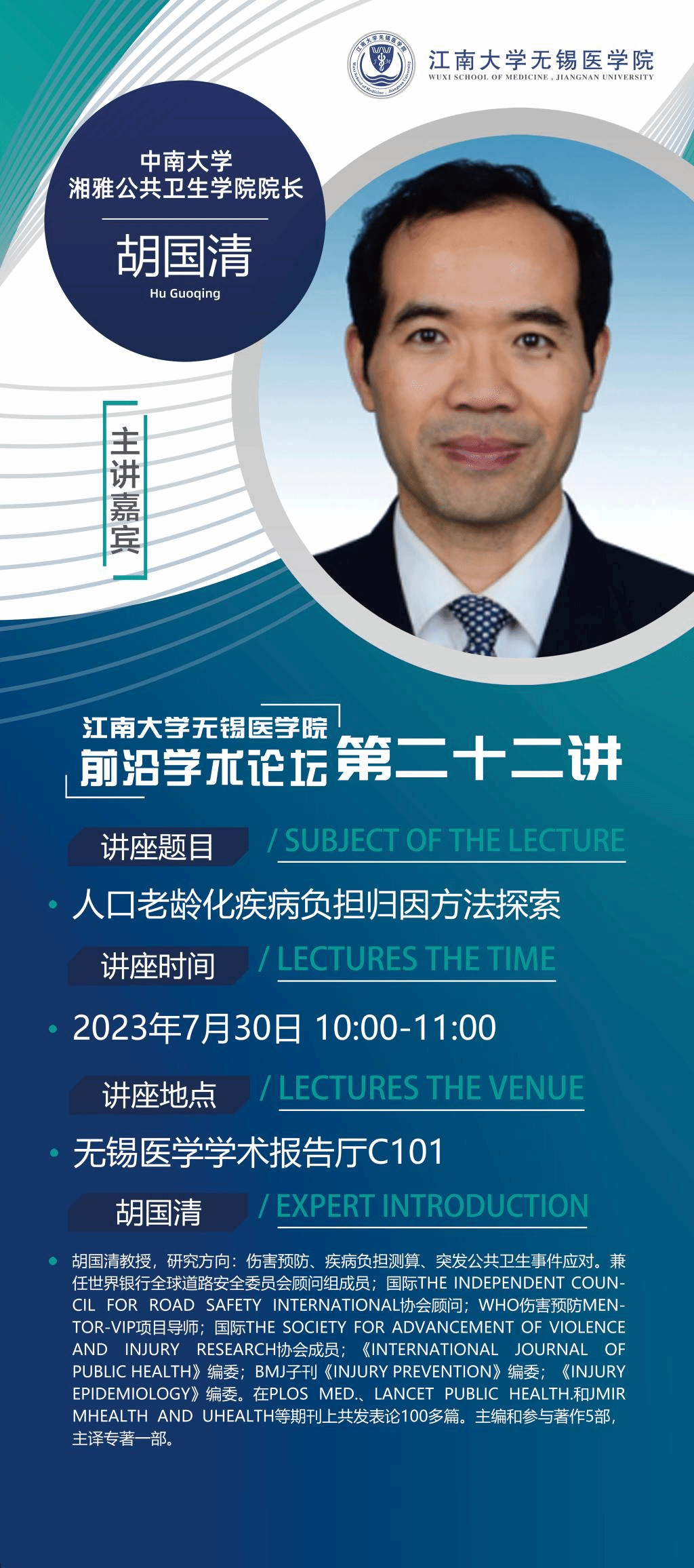 7月30日江南大学无锡星空(中国)院前沿学术论坛第二十二讲 胡国清教授——人口老龄化疾病负担归因方法探索