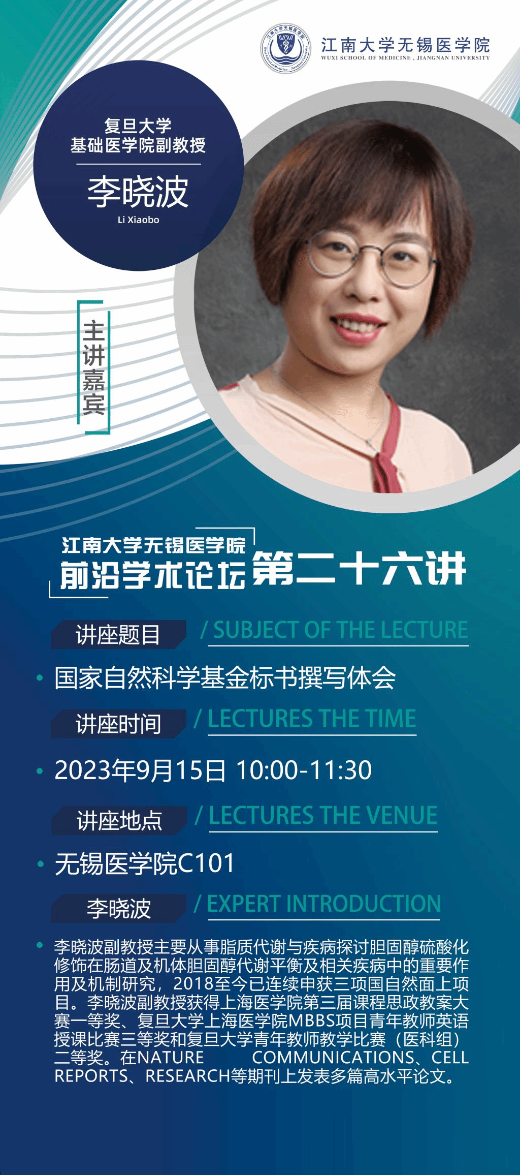 9月15日江南大学无锡星空(中国)院前沿学术论坛第二十六讲 李晓波副教授——国家自然科学基金标书撰写体会