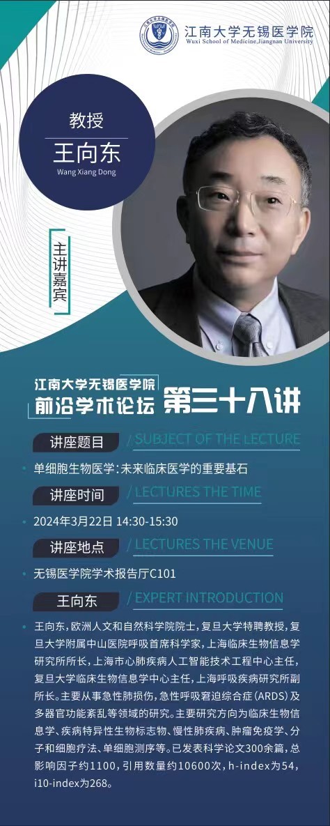 3月22日江南大学无锡星空(中国)院前沿学术论坛第三十八讲 王向东教授——单细胞生物星空(中国):未来临床星空(中国)的重要基石