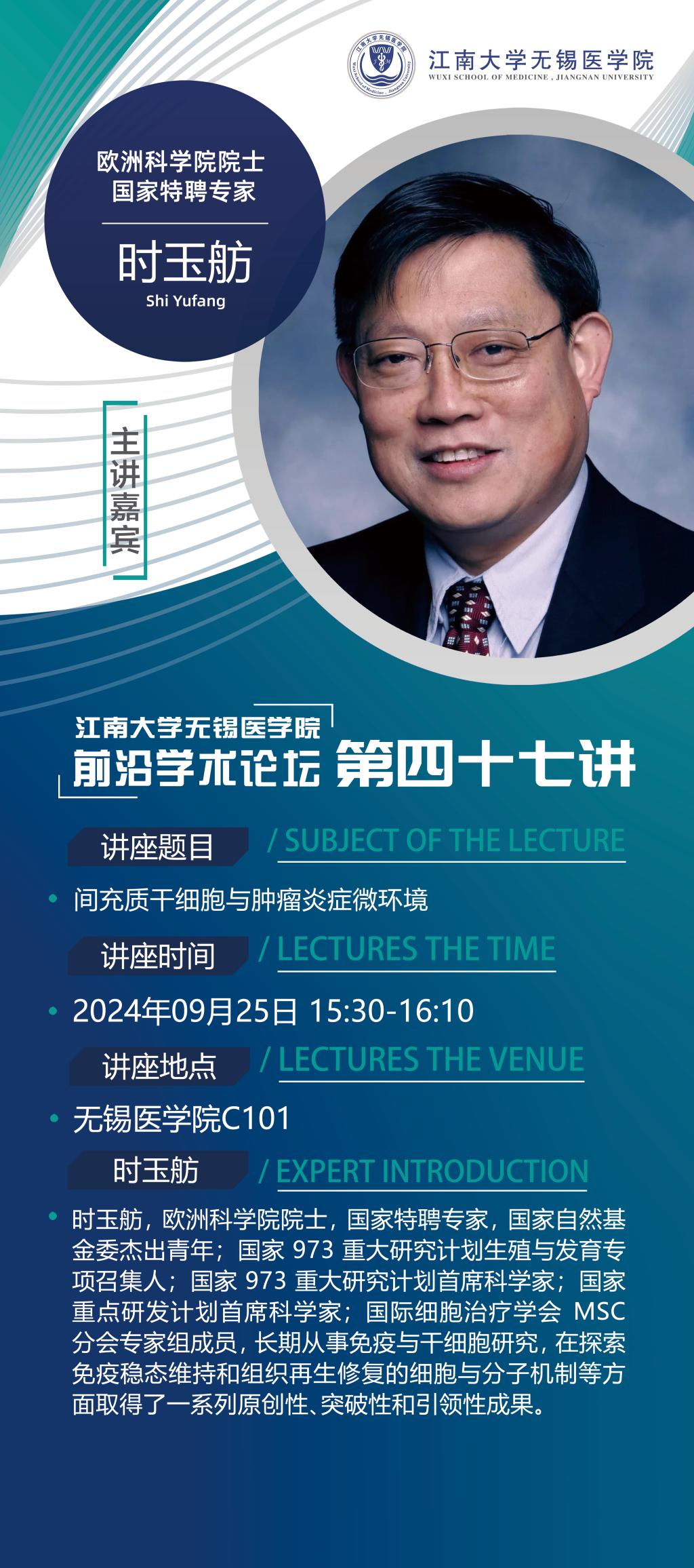 9月25日 时玉舫:间充质干细胞与肿瘤炎症微环境 Gerry Melino:Warburg Effect and Fructose