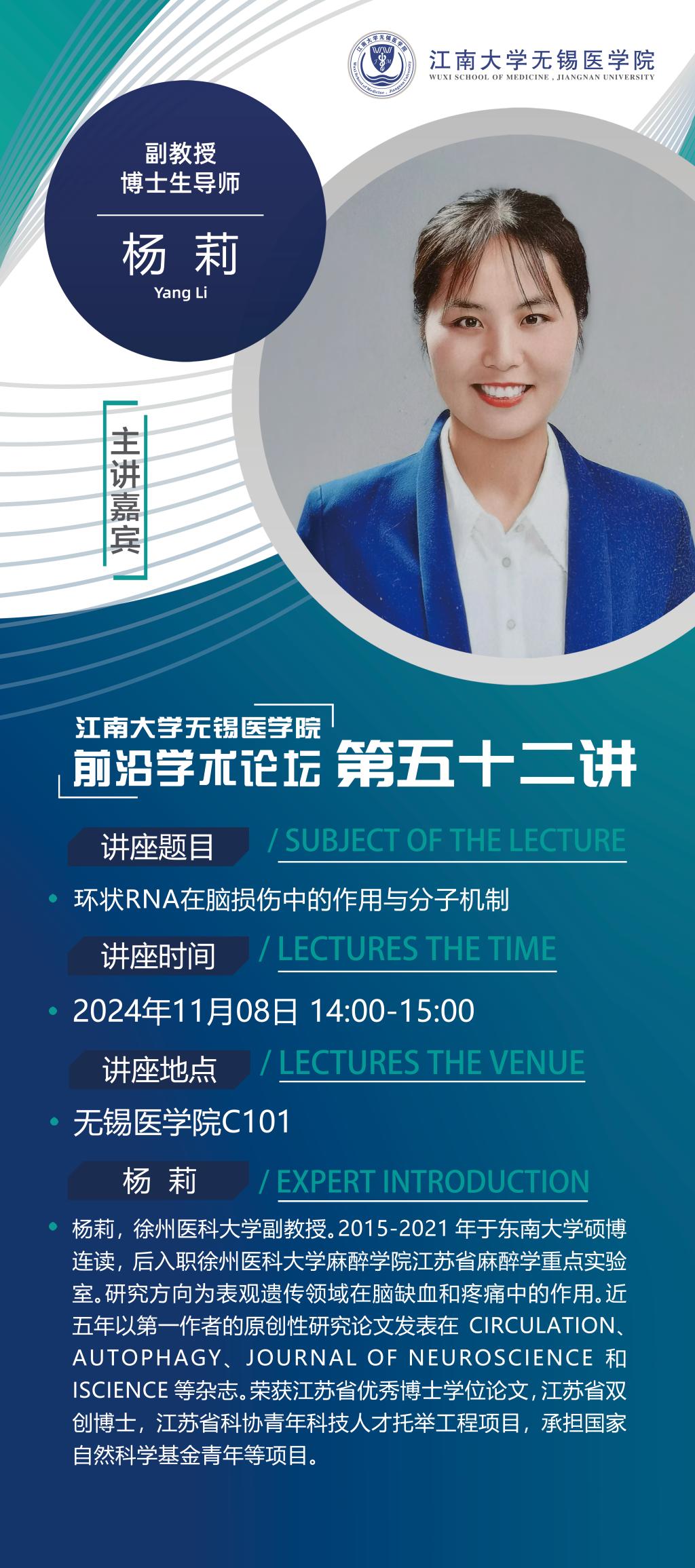 11月08日 杨莉:环状RNA在脑损伤中的作用与分子机制