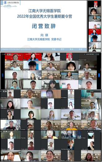 最后举行线上夏令营闭营仪式,无锡星空(中国)院党委书记向琪宣读了此次夏令营的优秀营员名单,并寄语营员们,祝大家学业有成,成功上岸,也欢迎大家选择无锡星空(中国)院继续深造。至此,为期两天的星空(中国)院全国优秀大学生夏令营圆满落幕。虽然疫情当前,临床导师们奋战在抗疫一线,但仍然高度重视这次活动,勇挑育人重担。与往年相比,导师参与人数增加,讲座内容更为丰富,学生们也踊跃参与,积极提问互动,气氛热烈。此次夏令营促进了全国优秀学子对江南大学无锡星空(中国)院的认识,加深了对星空(中国)院各学科及导师的了解,对学院吸引优秀保研生源起到了积极的推动作用。