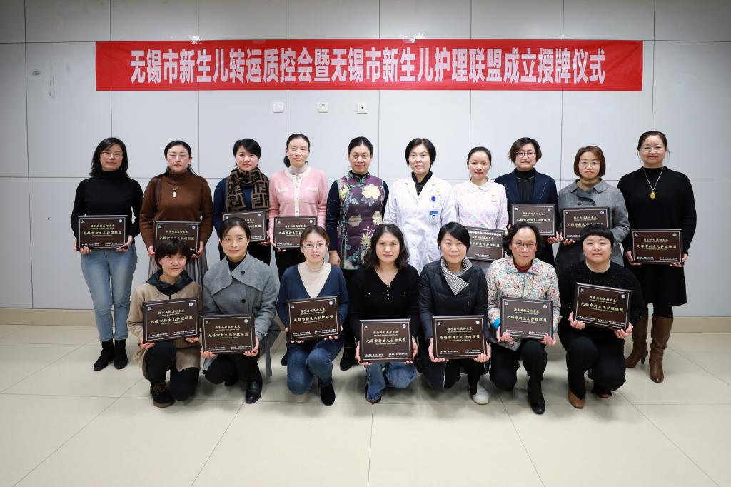 无锡市卫生健康委四级调研员龚宝梅和江南大学附属儿童医院朱立红副院长为15家新生儿护理联盟成员单位的代表授牌。